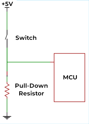 Uses pull-down to keep the pin low by default, then inverts the reading. This means the firmware sees “high” when nothing is connected and “low” when the sensor activates and pulls the pin high.