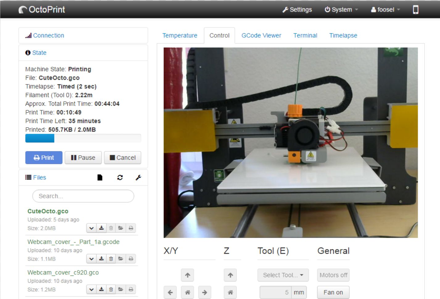 Octoprint is a popular web interface for 3D printers that provides remote control and monitoring capabilities.