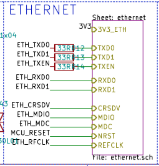 The main sheet contains the STM32H745 microcontroller and top-level connections to all hierarchical blocks.