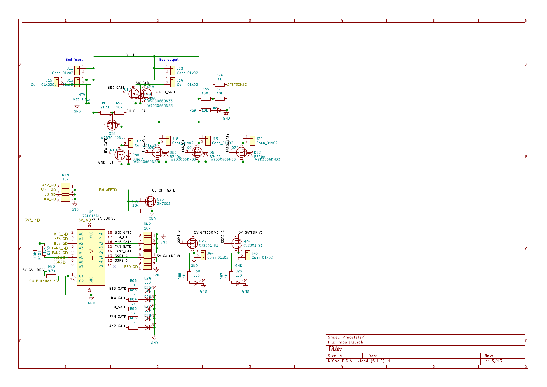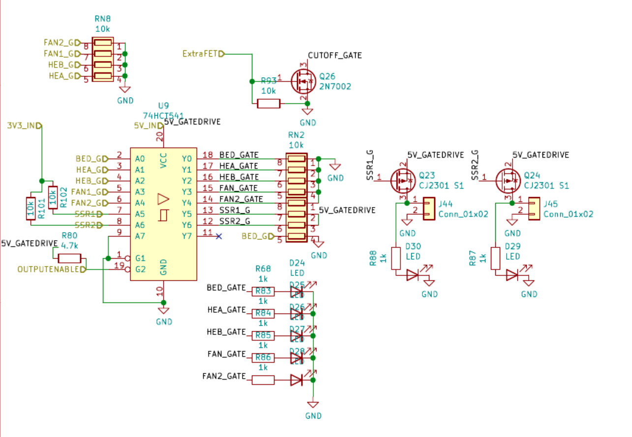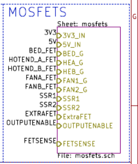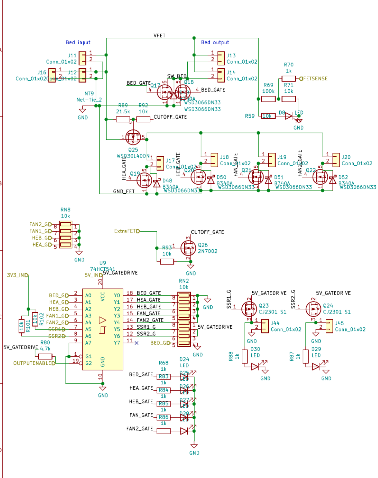 All MOSFET outputs: bed, hotends, fans, and SSR outputs.