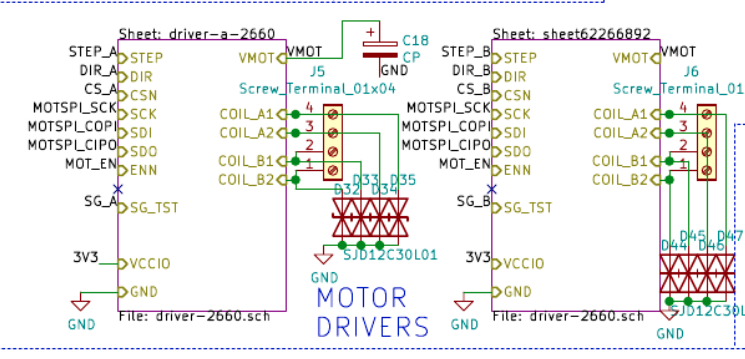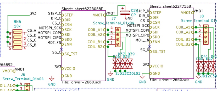 Four identical TMC2660 stepper motor driver circuits (Alpha, Beta, Gamma, Delta).