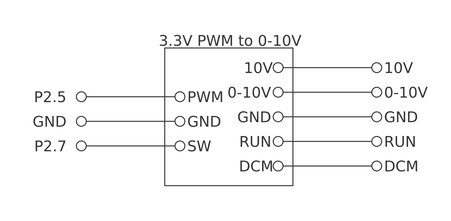This module is used to control a VFD with a PWM that is converted to a 0-10V analog signal by an additional circuit.