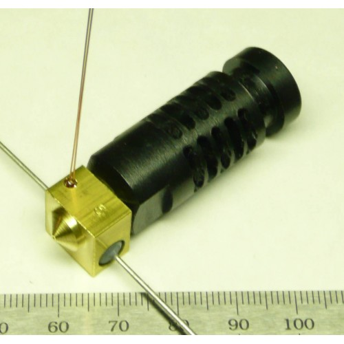 A J-head hotend with thermistor and heating element